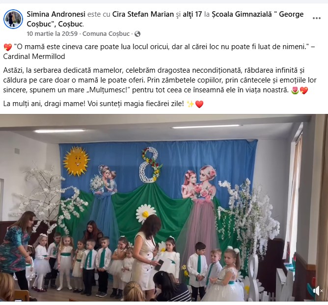 4. Activitate de incluziune: ”Ziua Internațională a Femeii și a Mamei”, prof. Cira Ștefan, Andronesi Simina, Pop Anca, Pavelea Petruța, Buga Nicoleta, Cira Virginia.