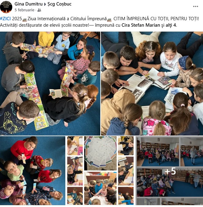 5. Activitate de incluziune ”Ziua Internațională a Cititului Împreună” prof. Dumitru Gina, Cira Ștefan, Buga Nicoleta, Pop Anca, Târnoveanu Rodica, Pavelea Petruța.